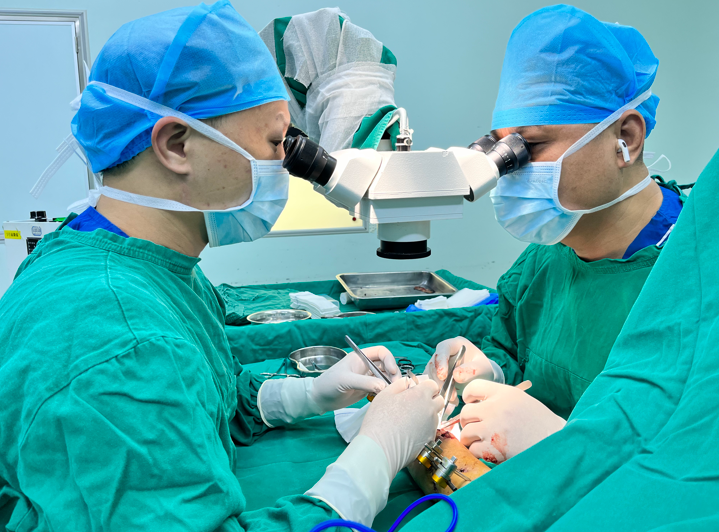于是,他开始了广深双城生活。尽管奔波,但他从未后悔。入职后,在医院领导支持与同事帮助下,他迅速融入新环境,结合自身经验与医院技术优势开展多项复杂手术。为进一步拓宽视野,他还先后赴国内多家知名三甲医院进修,学习大肢体创伤救治、淋巴水肿治疗、血管外周疾病介入治疗等前沿技术。