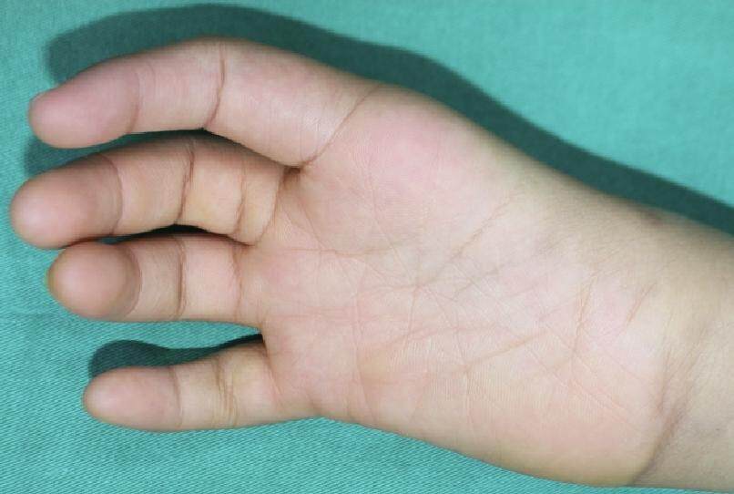 据广州和平骨科医院四肢畸形专科主任周洋介绍,小宇的情况属于先天性拇指发育不良,根据拇指解剖结构的异常程度和外观,拇指发育不良可分为5种类型,最严重的是V型——拇指完全缺失,而小宇就是这种。